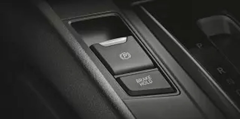 Phanh tay điện tử giúp việc đỗ xe hay dừng xe trên đường dốc trở nên dễ dàng chỉ với thao tác đơn giản trên nút bấm (P).
