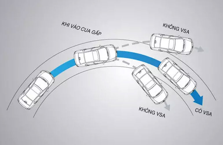 Hệ thống cân bằng điện tử VSA kiểm soát những thay đổi đột ngột, giữ cho xe luôn trong tầm kiểm soát của người lái.