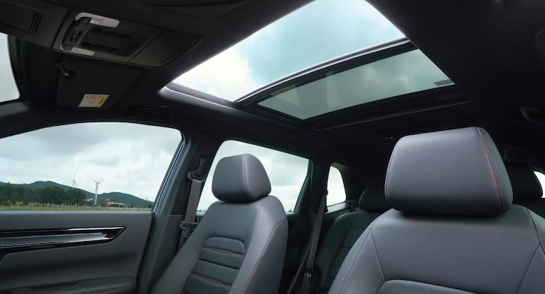 Cửa sổ trời toàn cảnh đón những tia nắng và làn gió để bạn đồng hành cùng thiên nhiên tươi đẹp (L).
