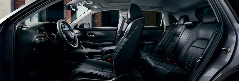 Nội thất Honda HRV được thiết kế dựa trên khái niệm HMI – Human Machine Interface, khác biệt hoàn toàn với thế hệ trước. Tuy nhiên, HRV vẫn sử dụng chất liệu nhựa cứng khá nhiều và không có quá nhiều đột phá so với bản tiền nhiệm. Nội thất trên phiên bản Honda HRV L được bọc da màu đen kết hợp với chỉ khâu màu trắng trong khi trên bản RS sử dụng chỉ khâu màu đỏ.